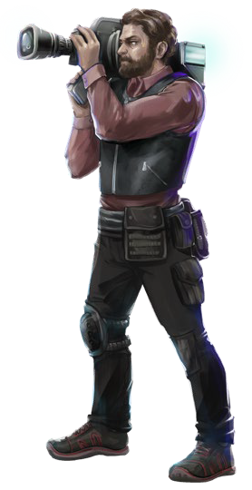 | Skills | Credibility 4, Athletics 6, Brawling 6, Composition 10, Concentration 8, Conversation 10, Deduction 11, Education 7, Evasion 13, First Aid 6, Handgun 13, Human Perception 11, Language (English) 9, Language (Streetslang) 7, Lip Reading 12, Local Expert (Upper Marina) 12, Perception 10, Persuasion 12, Photography/Film 12, Stealth 6[2] | ||||||||