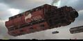 Inhabitants of Dogtown use the intact reactor from the ship to power the sub-district without the need for the local city grid.[2] BARGHEST also modified a working aerozep with their thematic yellow color and a display, which can be seen observed exclusively in the airspace above the sub-district.