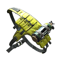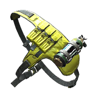 A black and yellow tactical chest holster with oxygen canister.