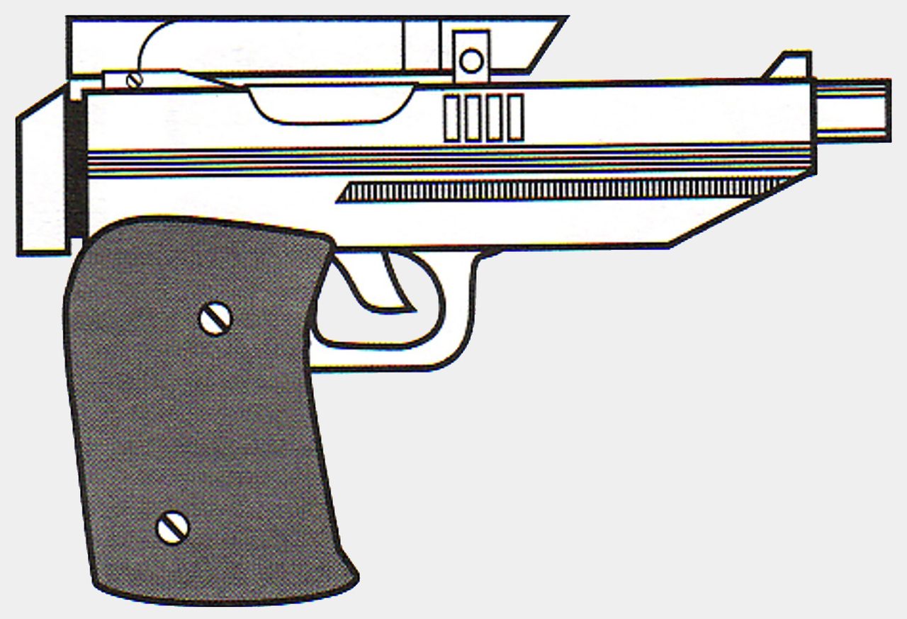 The Budget Arms Laser-Niner is a quality auto/machine pistol, sleek in design, which fires 9mm caseless rounds. Made to security specifications, it is built for combat, employing an internal laser-sight and 3-round burst/full-auto firing mode.