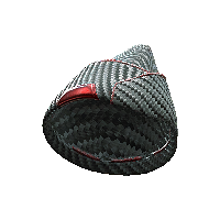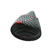 An black carbon-fiber side cap with red accents made by Arasaka.