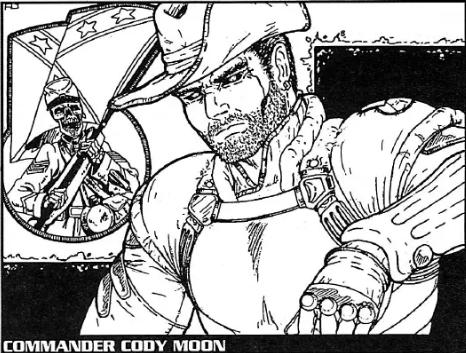 Cody Moon is leader of his own squad of mercenaries. He is the only one who knows who the client is, or what the organization has been paid.[1]