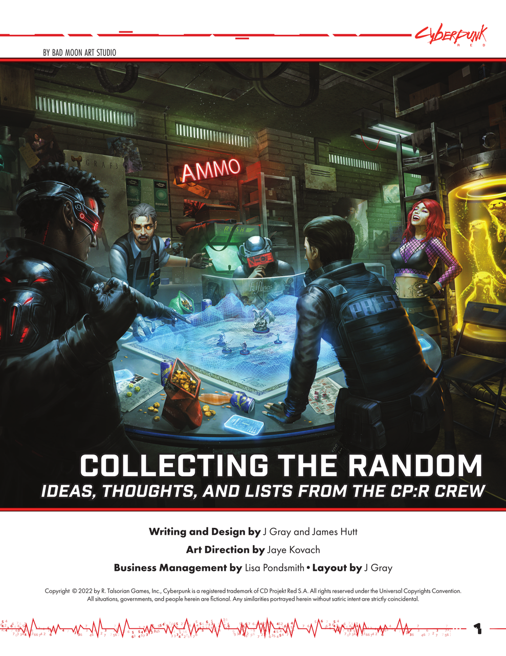 Collecting the Random is a free DLC released by R. Talsorian Games for Cyberpunk RED.[1] It is included in Interface RED Vol. 3.