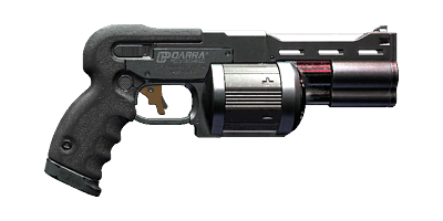 The DR-5 Nova is a revolver intended for the poorer end of the market demographic. Made from cheap materials and sporting a straightforward design, the weapon suffers from high recoil and is prone to jamming, but, due to its cheap price and overall availability, is a sidearm found in almost every corner of Night City, used by almost every type of NC denizen as a last ditch protective sidearm.