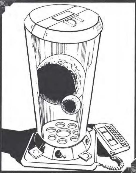 DataTel Holotank is hologram display. Consisting of a clear cylinder capped at both ends with super high-definition laser projectors, a holotank is filled with a highly-reflective, non-toxic gas into which a hologram is projected. The hologram can be static or animated, and its positioning can be manipulated by a remote keypad. Walk around tank, and you can see all sides of the (also called a "model").