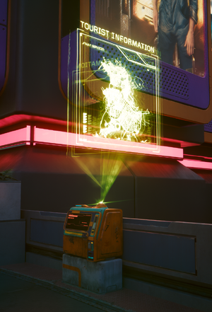 In Cyberpunk 2077, data terms function as fast travel points throughout Night City and the Badlands.[6]