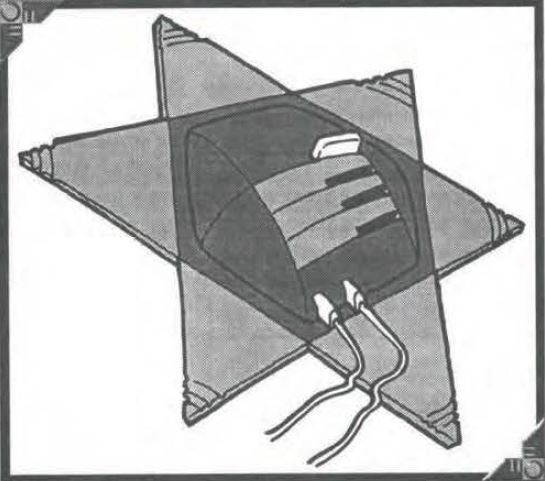 EBM Personal Net Interface 412 is the deck for those serious about their business in the net, and those who want security. The deck sits on the tabletop, and remains closed unless you press your thumb to the top but can bypass with Difficult Electronic Security roll. Once that is done, the sides fold down, and you can plug in, unfold the videoboard, and take hard copy from the printer. The deck hexagonal prism design looks elegant even when it isn't in use. Available in chrome, black, white, or, for a small additional sum (400eb), with moving, abstract designs on the outer panels. The cyberdeck as a work of art is here.[1]