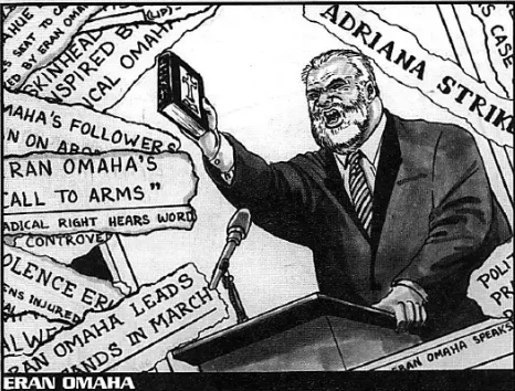 Eran Omaha is leader of an underground pipeline that hides corporate fugitives, extraction victims, and now freed clones. He covers his activities and spies on his enemies by assuming the persona of a popular radical-right preacher who condemns all minorities, non-Christians, foreigners, and clones and heavily cybered individuals. It is a dangerous double life. Omaha holds a Ph.D. in history, and specialized in the the history of religious and racial pogroms.[1]