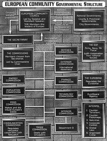 In 1992, the European Economic Community was established with a common currency called the Eurodollar, whose stability lead to it becoming the official currency in several non-European nations. Zones of Control and protective tariffs were established by the EEC as a means of regulating and administrating the activities of member nations. The regulated activities of the member nations included those of France, Germany, Britain, Japan, and Italy.[5] The US, however, was refused entry because of isolationist and protectionist policies of the ruling Gang of Four making it the only superpower at the time to not join.[1][2]