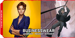 Suits, semi-formal dress and other pricey, natural fiber attire. Ties are mandatory with this stuff. No combat Edgrunner would be caught dead in these clothes; on the other hand, a good Mover or Corpzoner wouldn't wear anything else. Fixers in large organizations, some Rockerboys and a few Corp enforcers wears these, Babes go for guys in suits and dudes watch Corp-ettes wearing those frosty silk business skirts.