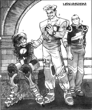 Athletic wear is a version of Generic clothing with more style and pizzazz, tending towards the chilled look. Imagine sweats being taken to the level of designer jeans. Wearers usually don't have something to prove but do enjoy interestingly decorated and upbeat fashion with more originality then Generic - but not as much glitz as Urban Flash. An example may be the type of clothing '90's athletic stars wore on their days off. These are the clothes most TV ads will try to sell you.
