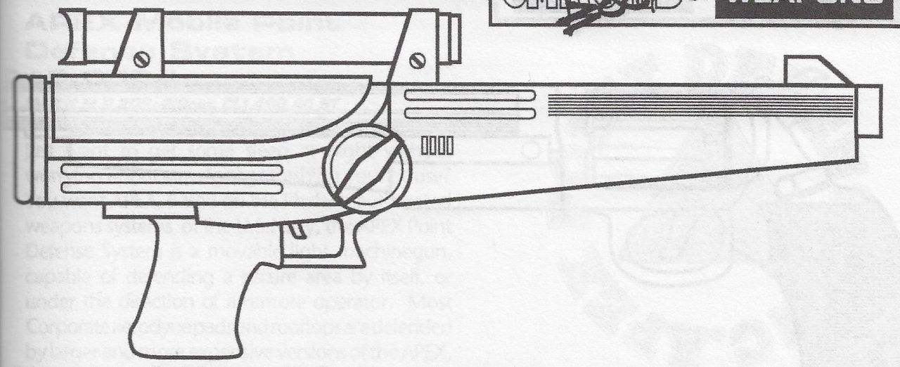 - ↑ QUINTANAR, D. Blackhand's Street Weapons 2020. Berkeley, CA, R. Talsorian Games, 1995. (p.33)
