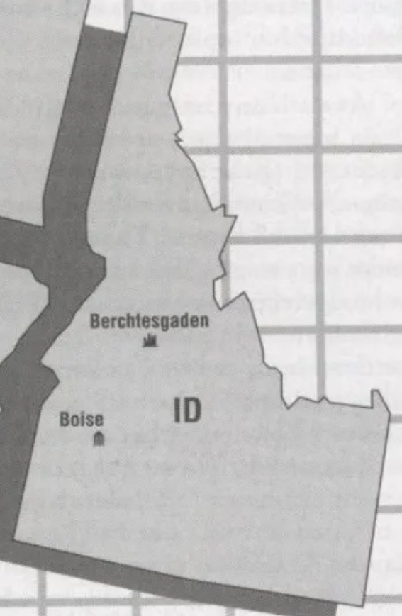 The state claims to fame was being the involuntary home of several Neo-Nazi white supremacy groups in 1990's. During the Collapse, most of the hate groups had already faded into oblivion, either too hungry to hate or too violent to survive retribution but seized control of Idaho. Minorities and strong-willed anglos banded together as a resistance in short order, fighting against the Neo-Nazis and instituting a new underground railroad. After the Collapse more people began to fight back the New Circle, which ran the state. After the battle, the Idahoans rebuilt their government in the same fashion, and the provisional council stepped down gracefully. The Neo-Nazis that fled into the national forests of central Idaho and founded Berchtesgaden learned a lot from their defeat, and they now train with a rigorous determination unknown in the movement prior to this time.