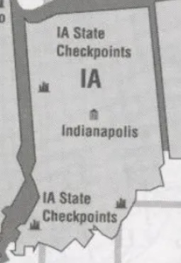 Indianapolis has become the major transportation center of the Midwest area because of highways leading to Chicago have all been destroyed. Indiana and Illinois both sit squarely astride the interstate shipping routes connecting the Great Plains and Appalachia but Indiana has severe restrictions on road use, which effectively limit interstate shipments to use Interstate highways.[1]