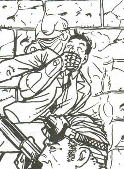 In 2022, during the Fourth Corporate War, Kei Arasaka assigned Haruko Kanawa to lead a covert operations team, which included Kagekaze. The group was sent to a number of missions around the world, with the borg's interactions with the rest of the team being professional, except for Mitsuko Taida and Haruko. Kagekaze was from the same clan as Mitsi, and acted as a protective uncle towards her. With Haruko, he regarded her as a ninja-wannabe; despite respecting her leadership, he addressed her as a kawaii samachan, roughly translated to cute lil' boss lady, though he simply did this to ruffle her feathers.[1] When the war became hot, Haruko was withdrawn from the team to work for Kei personally.[2]