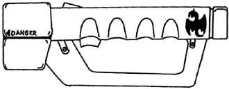 The Kendachi Dragon is a hand-held flamer. The ignition must be activated 1 combat round before firing. It creates a 4m flame doing 2D6 spread over 2 random body areas the first round, then 1D6 to 1 area the second round. Only hard armor, or soft armors of SP15+, will protect the target. All soft armors will be damaged 2 SP instead of 1.[1][2]