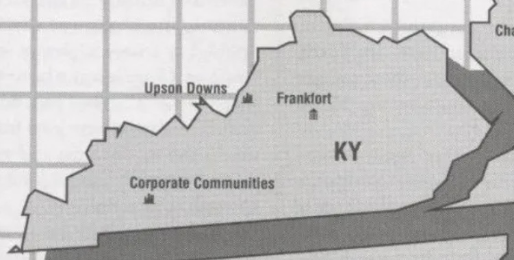 Kentucky was hit hard by The Collapse as thousands of refugees from Ohio, Indiana, and Illinois flooded into the state, and were subsequently shot by wealthy land owners. Its economic downturn has actually made it popular with corporates as land is cheap. It’s also one of the few places in the world in which horses are still bred, and the annual SiliCrown Sweepstakes is the biggest horse race in the world.[1]