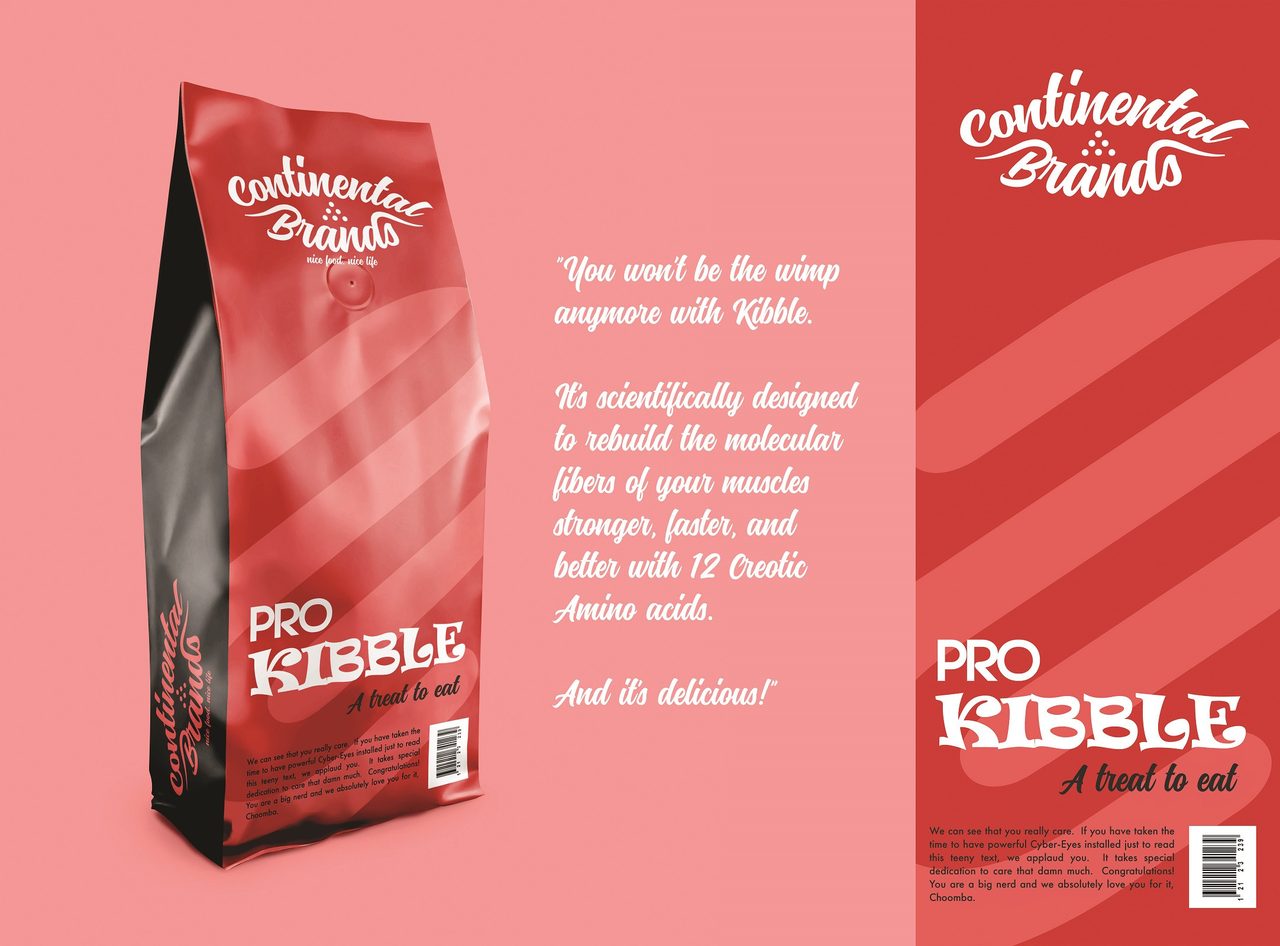 Kibble was originally designed by the company Purina Foods after the Central American Wars caused major food shortages in the area. It was quickly adopted by other countries as an affordable source of nutrients.[3] Like potato chips, they now come in several brands and flavours.[4]