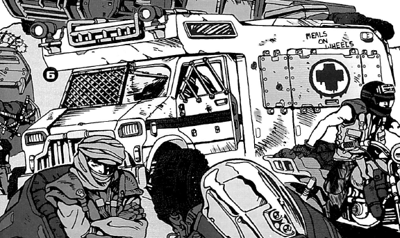 - This is a modified RV, such as a Winnebago Wanderlust. They are fully-equipped clinics on wheels, owned by the clan as a whole. Armor is there, as well as a few gunports, but the med-wagon is parked in the middle of the camp and travels in the protected center of its pack on the road.