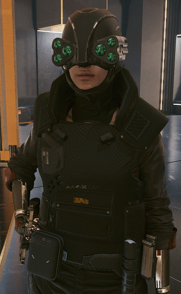 Melissa met a mercenary by the name of V later in 2077, by which time she had already obtained the rank of lieutenant, and held a senior status in MaxTac. Rory's squad arrived at the Jinguji store in Downtown Night City just moments after a cyberpsycho had burst into the store, killing its two guards and attacking V.