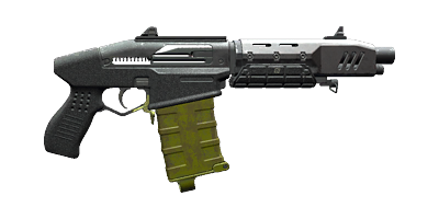 A classic weapon, hailing from the early 2020s, the Crusher is a fully automatic shotgun with a 12-round magazine that holds 12-gauge shells, which each contain 5 pellets. The Crusher is compact enough that it can be wielded with one hand.[1]