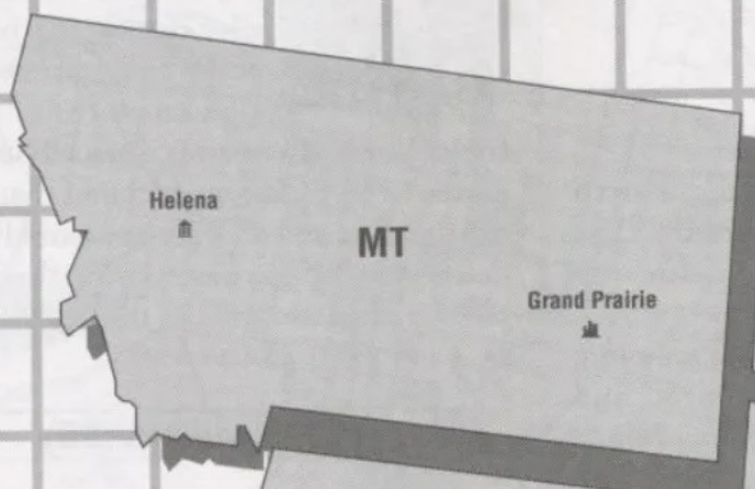 Montana was already suffering from drought before the Brushfire hit eastern Montana. The area is now nothing but endless acres of agri-corporation fields, while the western part consists of overcrowded old towns and ranches in the Rocky Mountains.[1]