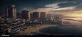 Over the following years, the district became a massive construction project, importing hundreds upon hundreds of laborers (mostly from Haiti) and poured billions of eurodollars into building luxury hotels, casinos, shopping centers, spas and a newer and bolder amusement park, as well as an impressive sports arena.[4] Militech spearheaded the construction effort, followed by major construction companies like HFS, Zhirafa, Corp-Bud, Aurochs, among others. Coastview and West Wind Estate became the western sub-districts, while the eastern section was to be called Serenisands. Old buildings were dilapidated to give space to modern structures, and a high-speed road network was connected to the rest of the metropolis. This investment was meant to show Night City's economic strength, but short into the project, a large explosion under a construction site put the whole thing on hold.[5]