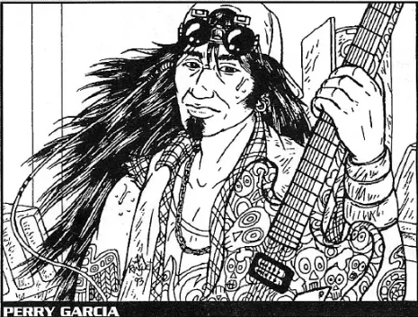 Perry Garcia is the front man for a struggling underground band, the Starving Dogs, playing the Nashville club circuit. He came here from either Night City, New York City, or whatever big city the Character who knows him originated from. He's loud, and slightly obnoxious but friendly and sincere (a rare thing in 2020). He will do whatever he can to help the characters He has a small apartment, and a beat-up grey van the Starving Dogs use to haul their equipment around. Garcia carries a large handgun for protection, mostly against radical splinter groups from Citizens for Decency. He tens scars on his from a CFD club bombing.[1]