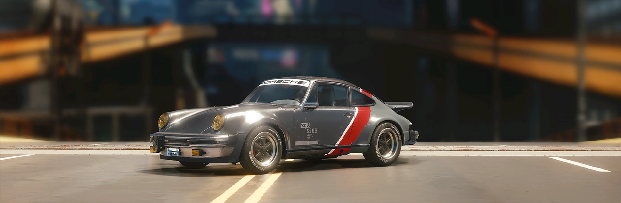 The Porsche 911 Turbo is the signature customized vehicle of legendary rockerboy Johnny Silverhand, lead singer of Samurai.[2] This specific Porsche was manufactured in 1977. When Johnny got his hands on it many years later, he tuned the vehicle and customized it to represent his own tastes.[3][4]