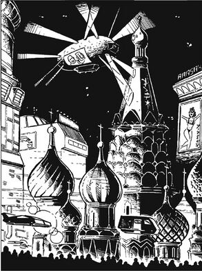 In 2077, the USSR was a nation of irregular contrasts. Many citizens were guaranteed free public health care and access to the latest medical technology, complete with modern aerodynes,[4] and new cities were being built to house and employ the USSR's increasingly sedentary nomad population. However, basic resources remained scarce, and pollution was a significant problem. The government created an AI named Geroi with the sole purpose of calculating solutions to these issues.[5]