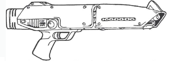 The Volt Pistol is comparable in size to a medium SMG and is powered by a removable power pack (25 eb for fresh packs).[1][2]