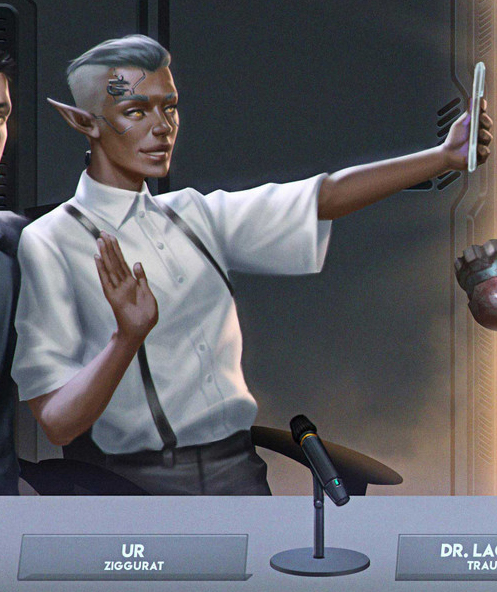 The founder and visionary behind Ziggurat, represents the can do, by the bootstrap spirit of the modern Corp Executive. Little is known about them from before they burst onto the scene in 2030 with an ambitious plan to rebuild communications in the Time of the Red. Extremely charismatic, UR's ambition and enthusiasm united a normally heavily divided Night City Council long enough to build one of the first CitiNets and Data Pools in the world.