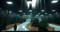 The Arasaka Tokyo tower interior is elegant and well appointed. The black theme isn't as severe inside as out, although synthetic and natural black marble is common in the nicer areas of the tower interiors. Main lobbies are stylish and spacious. The decorations is a tasteful blend of modern and contemporary Japanese artwork and sculpture. Beyond the lobby most areas tend to be designed for functional elegance, with true luxury appearing only in the upper executive areas. Except for the lobby and public areas, the higher one gets in the tower the richer it will look.[1] There is a great range between the simple, stark functionalism of the lower employee areas and the lavish elegance of the upper executive offices.