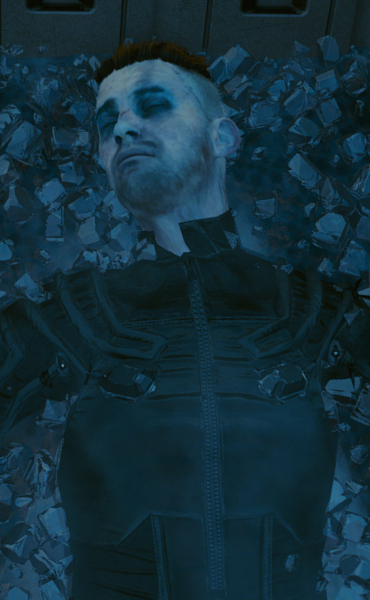 Depiction of Rache Bartmoss's body inside the cryogenic freezer